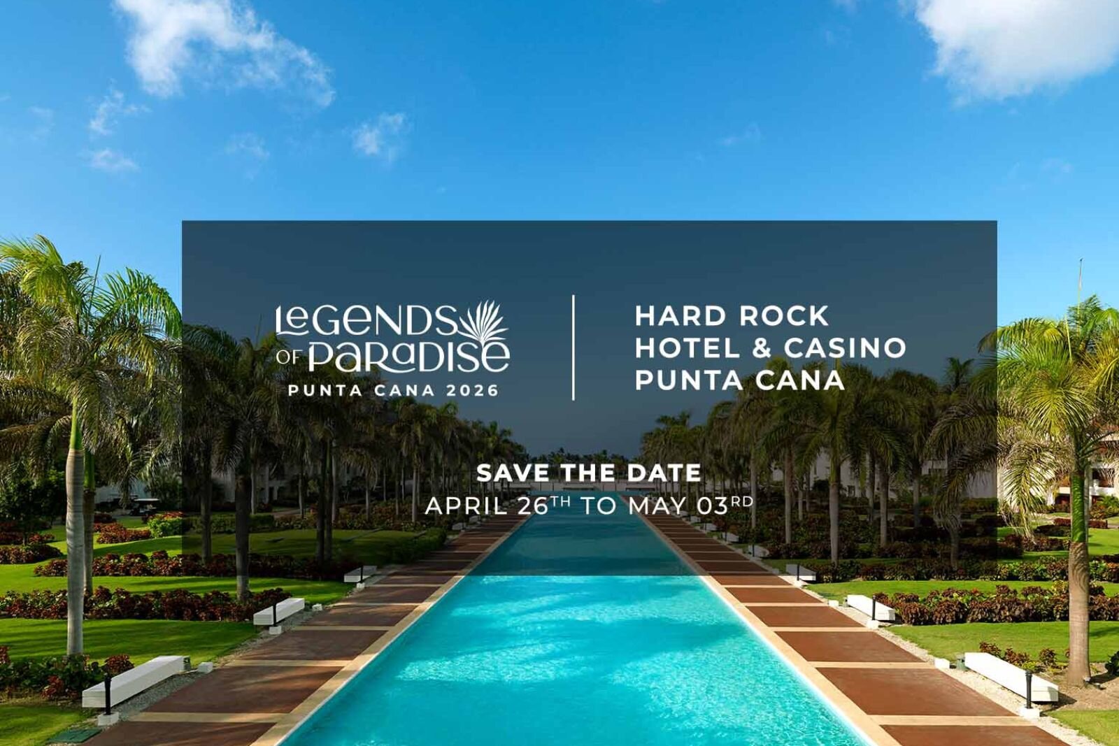 Save the date: April 26–May 3, 2026 at Hard Rock Hotel & Casino Punta Cana. A week of luxury, entertainment, and exclusive experiences for members.