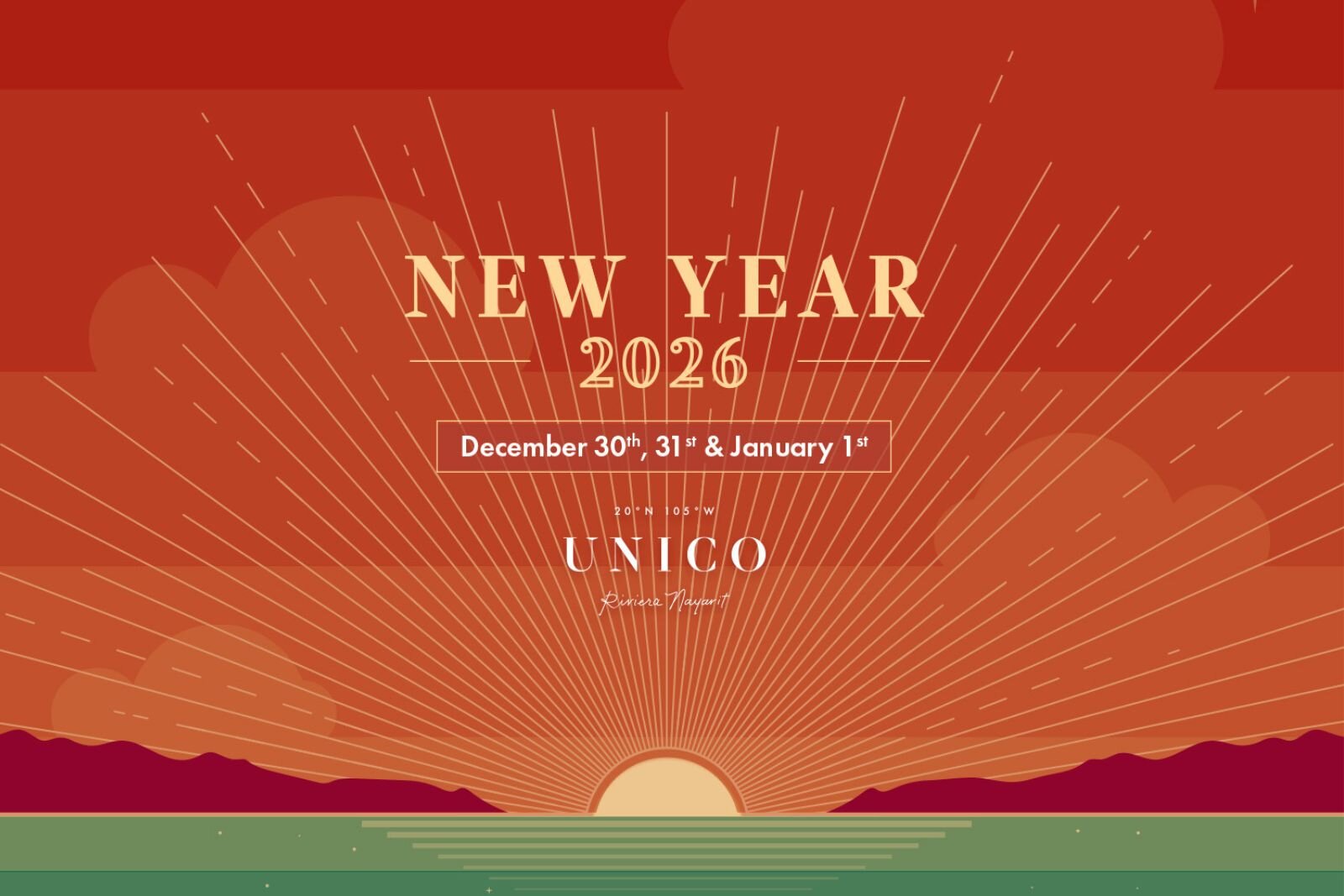 Join us for three amazing days at UNICO 20° 105° Hotel Riviera Nayarit, celebrating the new year with specially selected events from dawn to dusk, December 30th to January 1st, 2026.